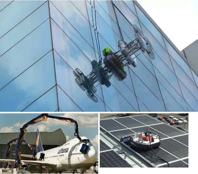在城市建筑方面,机器人能够攀附在摩天大楼上完成墙体表面的清洁任务,有效避免清洁工高楼作业的安全隐患;在高端装备领域,机器人能够为高铁、船舶、大型客机的表面保养除锈,降低了人工维护成本和难度;在地下管道、水下线缆、核电站等特殊场景中,机器人能够进入到人类不适于长时间停留的环境中完成清洁任务。