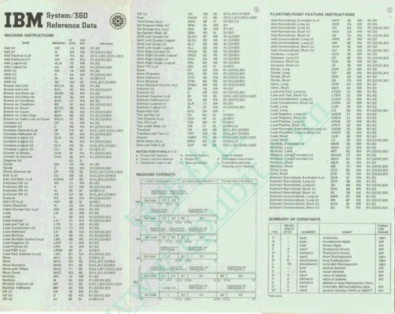 图1-2 IBM 360架构指令集图卡