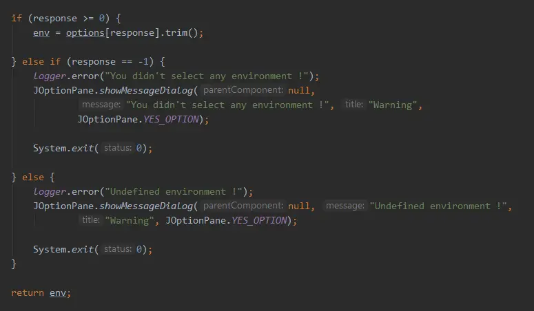 获取到properties里面EnvironmentList的值,顾名思义就是环境的list,之后可能会有不同的环境,目前list里面就只有一个。如果后期list里面有别的,就会分割然后存到options这个数组里面。