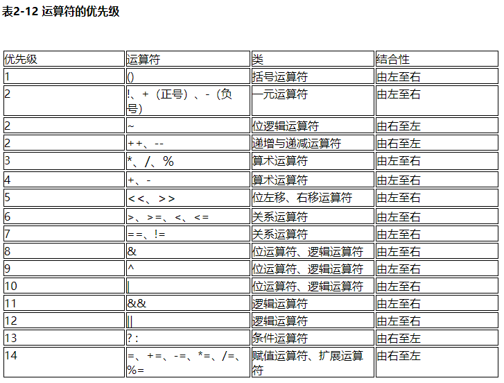 运算符优先级