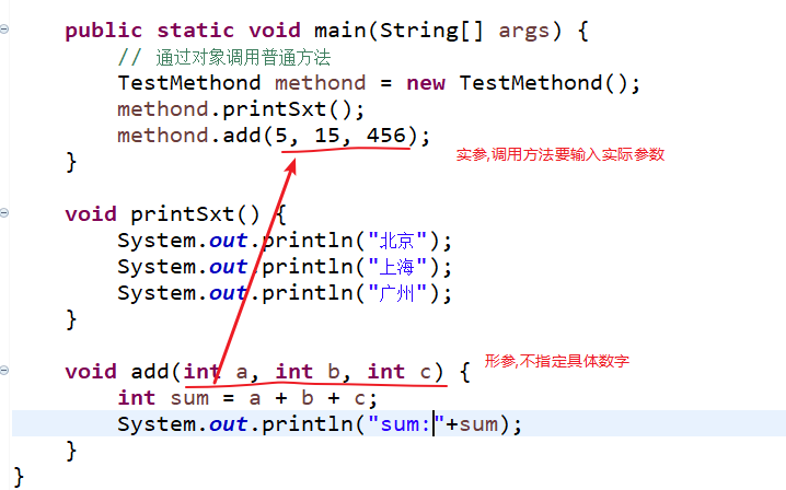- 2.实参:调用方法时实际传给方法的数据;