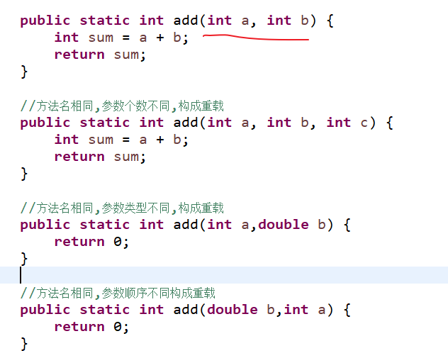 - 不同的含义:形参类型,形参个数,形参顺序不同