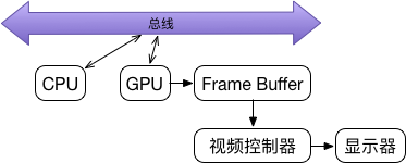 最终,GPU 通过 Frame Buffer、视频控制器等相关部件,将图像显示在屏幕上如下图
