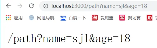 访问http://localhost:3000/path?name=sjl&age=18为例,效果图: