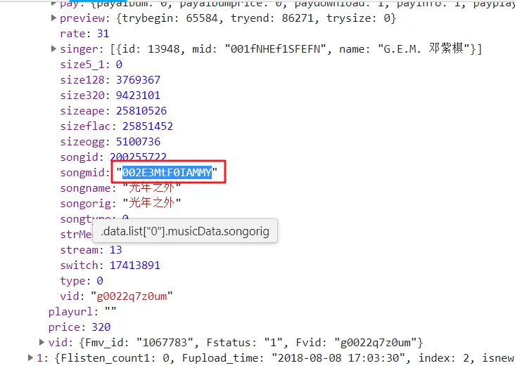 往下所述是用的黄色框的,因为更方便,不用单独找vkey、songmid来拼接url了。