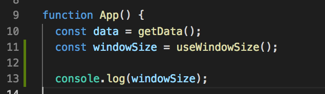 A custom Hook is a JavaScript function whose name starts with ”use” and that may call other Hooks.Our custom hook will be called useWindowSize, and it’ll call the useState and useEffect hooks.
