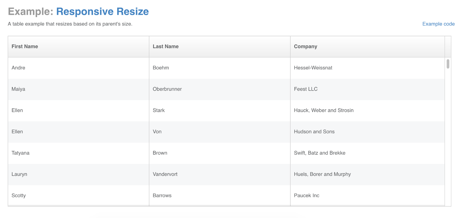Their documentation demonstrates a responsive table that resizes based on the browser’s width and height.