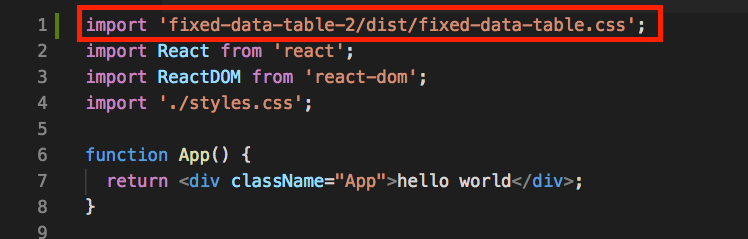 First you’ll want to import FDT2’s stylesheet in index.js, so your table doesn’t look whacky.