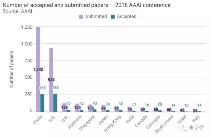 AAAI 2018,提交论文,中美占70%,中选论文,中美占67%。