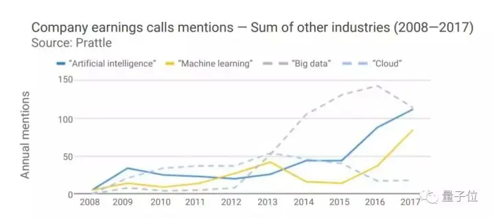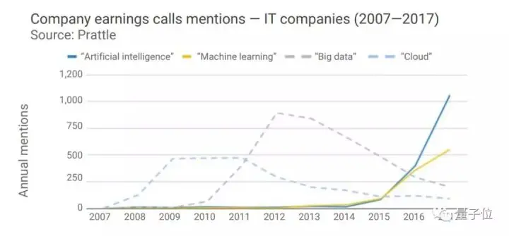 2015年,科技公司在财报电话会议中提及AI和ML的次数开始有所增加。