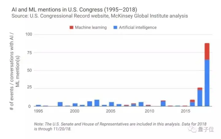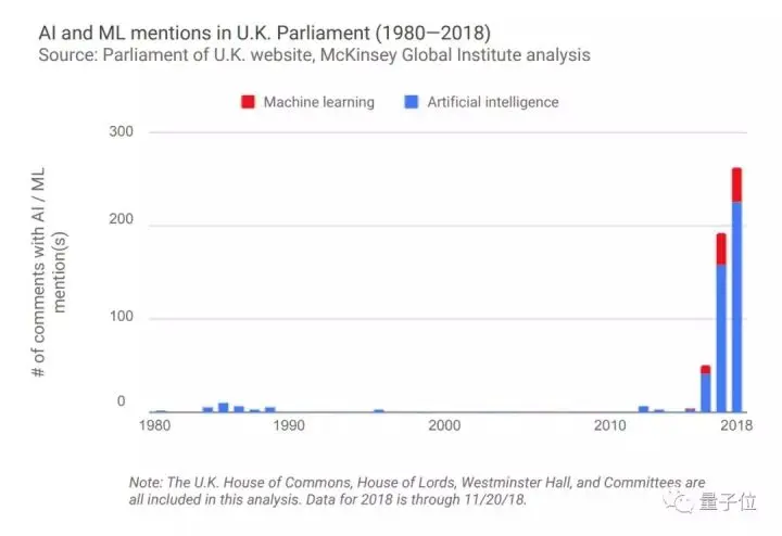 整体来说,自2016年以来,美国、加拿大、英国政府在国会/议会会议中提及人工智能和机器学习的次数激增。