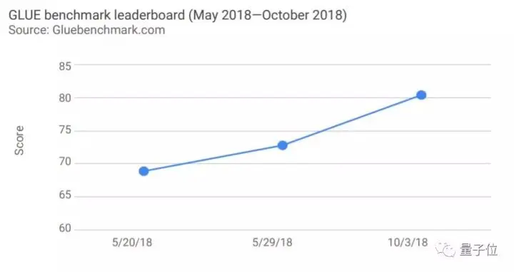 同样用于机器问答的GLUE基准(General Language Understanding Evaluation)推出至今只有7个月的时间,但目前的表现已经比半年前提升了90%。
