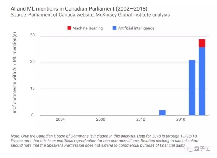- 整体来说,自2016年以来,美国、加拿大、英国政府在国会/议会会议中对人工智能和机器学习的提及激增。