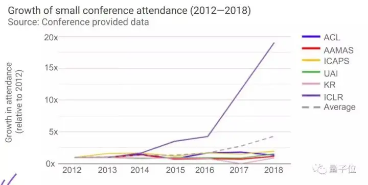 这里最突出的是,ICLR 2018的参会人数达到了2012年的20倍。