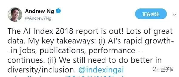 看过这份报告之后,人工智能大牛吴恩达总结了两点:1、AI正在快速发展,不管是学术界还是工业界都是如此。2、AI的发展仍不均衡,在多样性、包容性方面仍需努力。