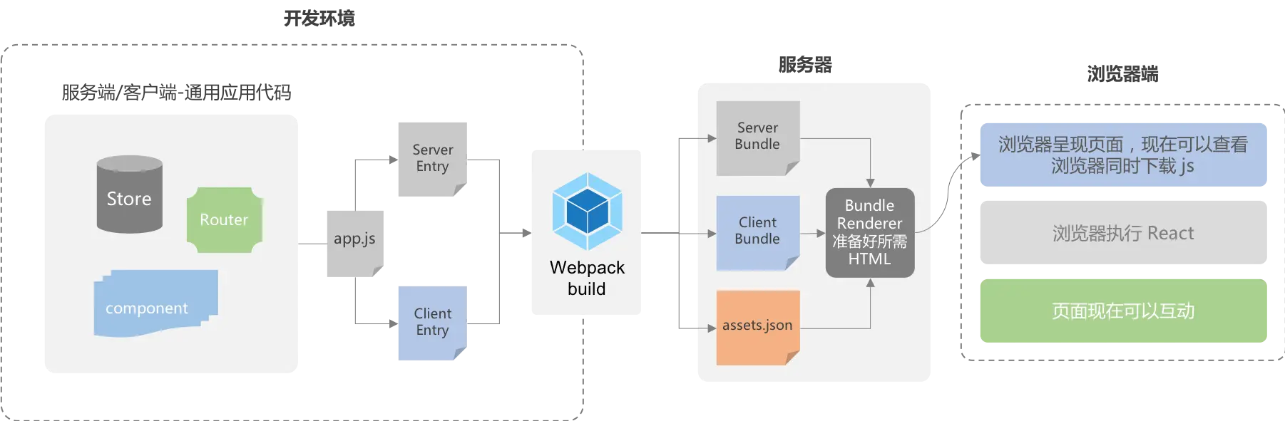 assets.json则是,服务器 bundle 在准备所需 HTML,需要预插入那些模块(chunk)js,和CSS,这只是提高用户体验。