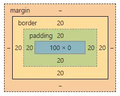 .content-box { box-sizing: content-box; width: 100px; padding: 20px; border: 20px solid #ff0; }