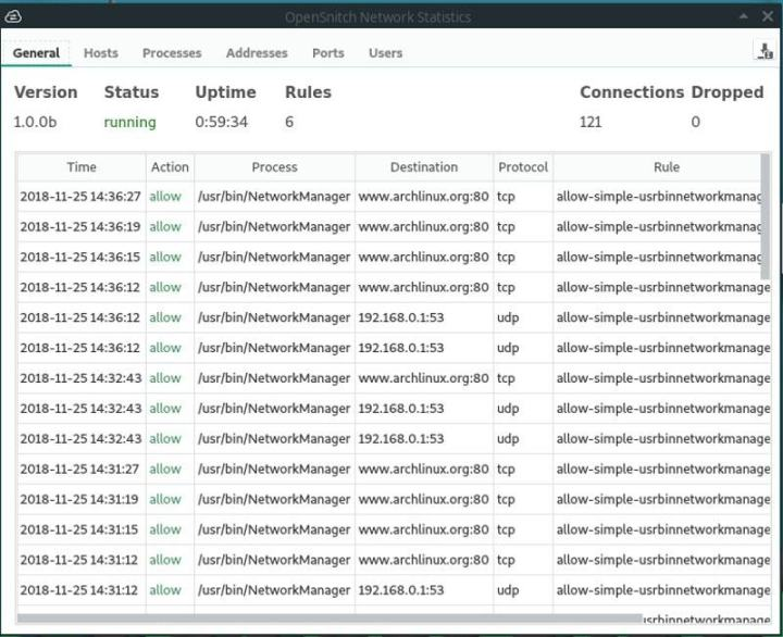 OpenSnitch 也有一个漂亮的、一目了然的图形用户界面: