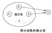 这个图就很好的说明了部分依赖,A={K1,k2,k3}若A->k4,且K2 k3->k4,这就提现了A中k1在函数决定K4时不是必要属性,这就说明k4部分依赖A。反之没有k2 k3 ->k4这一条件,则可以称为k4完全依赖A。