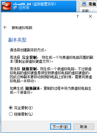 2.使用VirtualBox的复制虚拟机功能复制一个相同的副本,配置好网络;