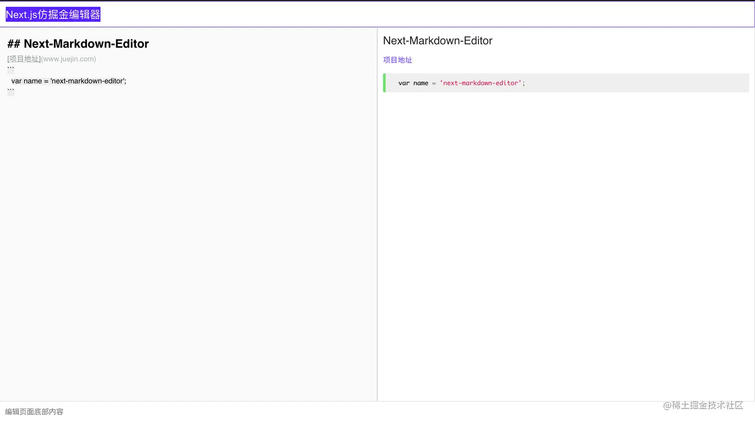 前面写了一系列文章都是关于Next.js的,顺便还搭建了个脚手架方便使用,反正目前来看可能用Next的人不多,也无所谓啦本来就是自己为了学习才开始写文章的。以学代练,基础知识已经准备的差不多了,开始应用了~我对掘金的新建文章编辑文章内容非常喜欢,正好前一段一直在弄文本编辑器相关内容,就写一个仿掘金编辑器的Demo吧,大家感兴趣的看一看,顺便给个star我是非常感谢的~