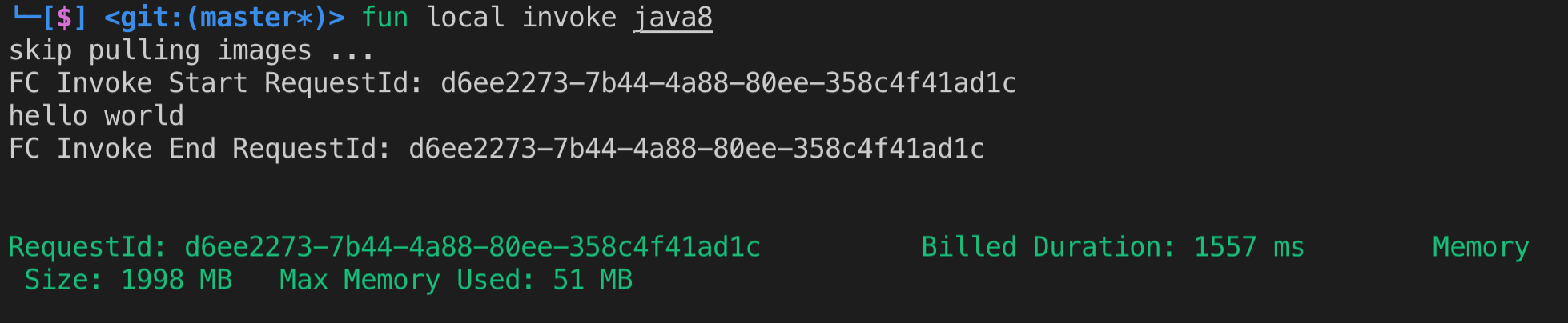 fun local invoke java8运行结果如下: