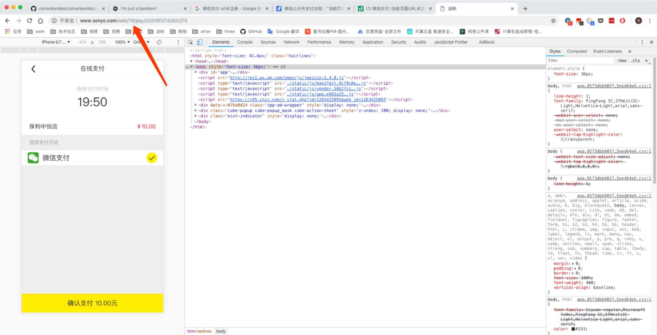 - 问题: 微信公众号H5调起支付时,点击支付按钮出现“当前页面的URL未注册”的提示。