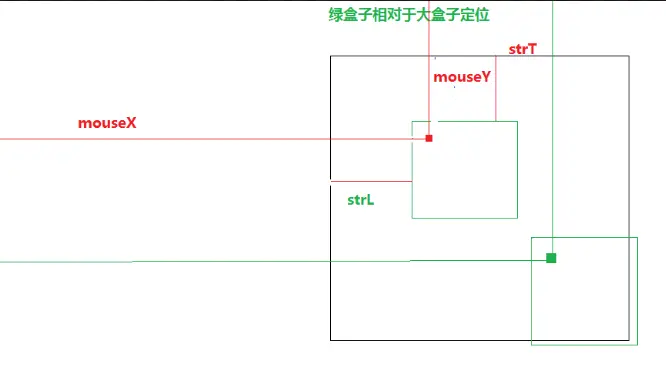 let curL = e.pageX - this.mouseX + this.strL,// 当前left 最新鼠标位置减去原有鼠标位置加上原有盒子相对父级元素的top或者left值