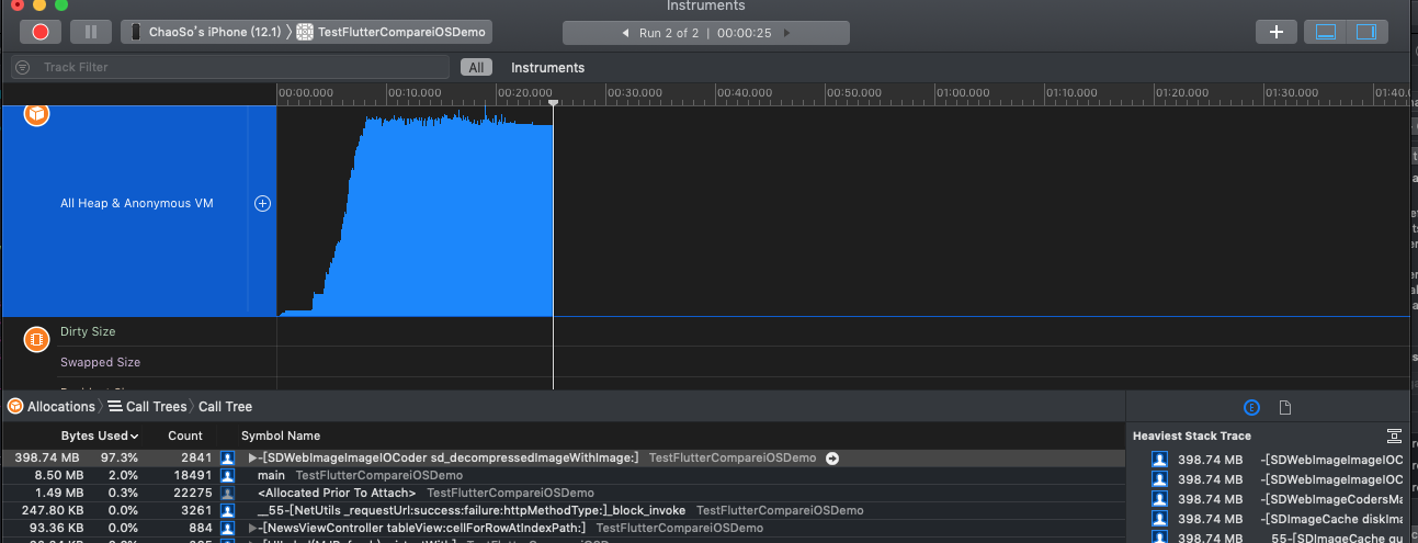 内存使用率-Flutter vs iOS原生