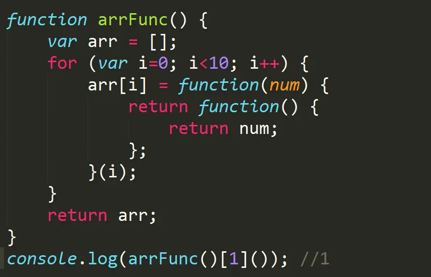 这时最内部的匿名函数访问的是num的值,所以数组中10个匿名函数的返回值就是1-10。