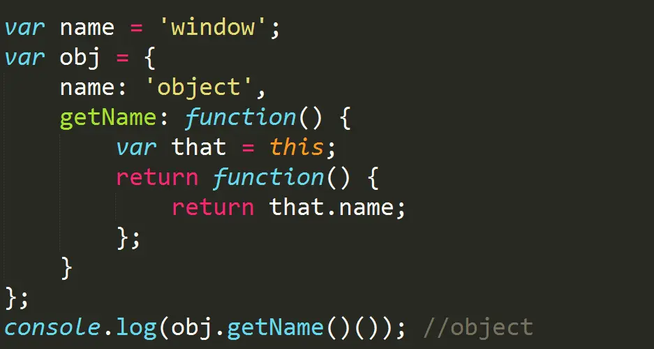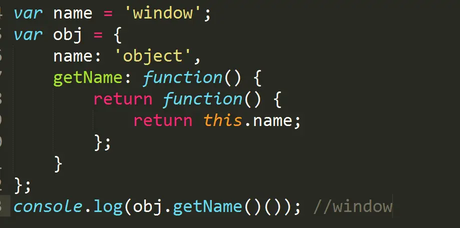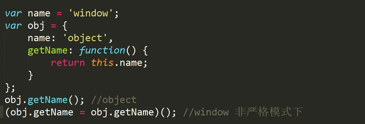 在上面这段代码中,obj.getName()()实际上是在全局作用域中调用了匿名函数,this指向了window。
