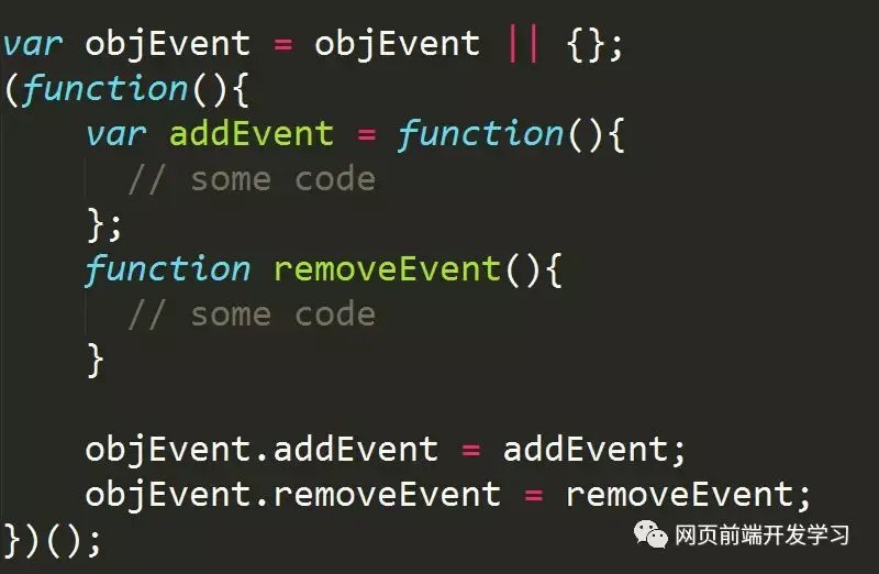 在这段代码中函数 addEvent 和 removeEvent 都是局部变量,但我们可以通过全局变量 objEvent 使用它,这就大大减少了全局变量的使用,增强了网页的安全性。