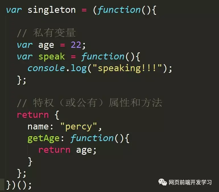 单例(singleton):指的是只有一个实例的对象。JavaScript 一般以对象字面量的方式来创建一个单例对象。