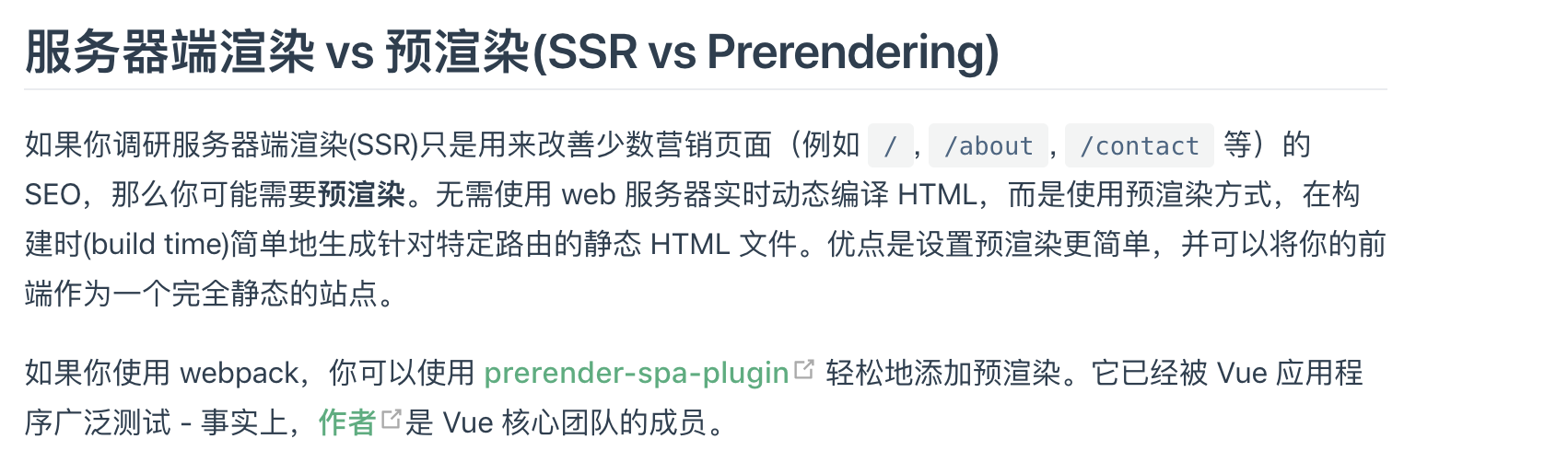 增加一处说明 : 预渲染是编译时提前渲染一次,服务器端渲染ssr是用户每次请求服务器,服务器把相应的内容填进去(这两者本质的不同,特此说明 !)