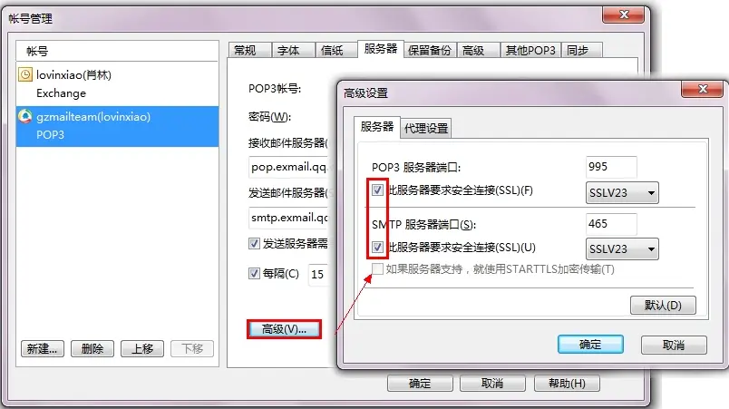 POP3端口也分为SSL/TLS加密端口995,和不加密端口110。