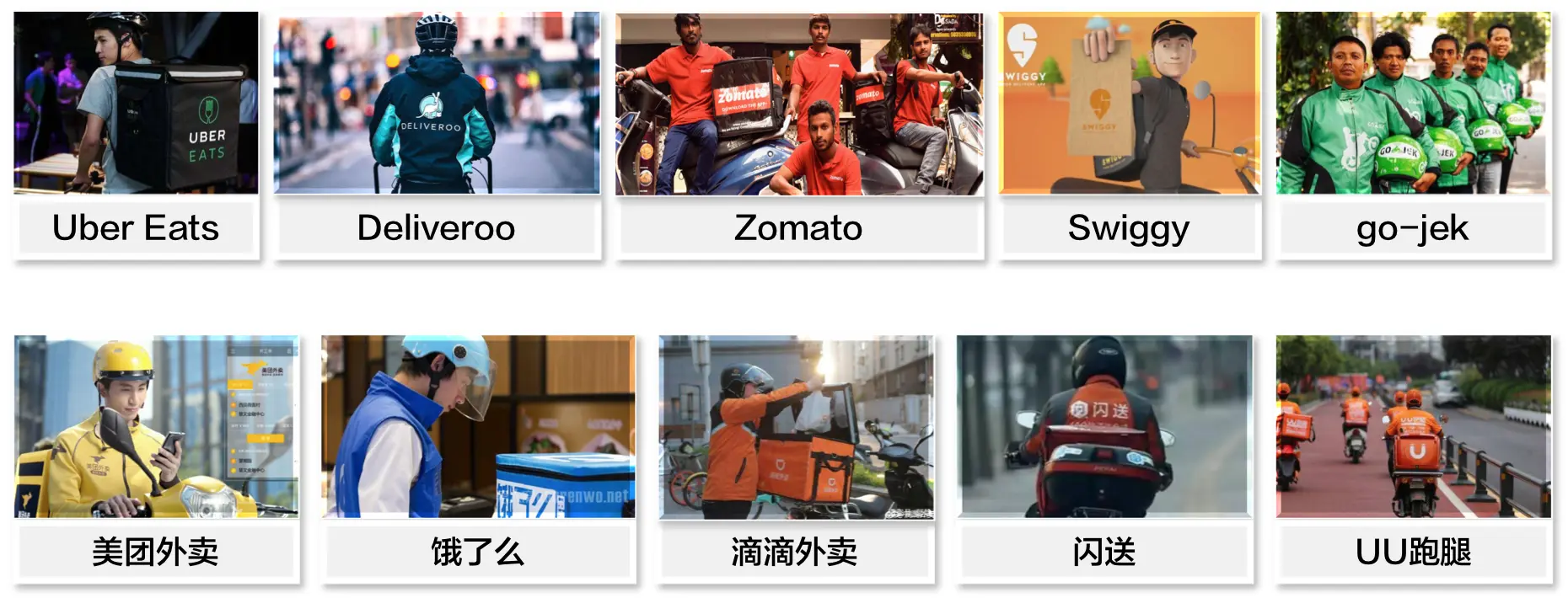 最近几年,以外卖为依托,即时配送业务在全球范围内掀起了一波快速发展的浪潮,全球各地都出现了很多创业公司,其中国外知名的包括美国的Uber Eats(全球)、英国的Deliveroo、印度的Swiggy、Zomato(分别被美团和阿里投资),印尼的go-jek等等。国内除了美团外卖、饿了么、滴滴外卖等典型代表外,而还有专注于即时配送服务创业公司,比如闪送、UU跑腿、达达、点我达等。
