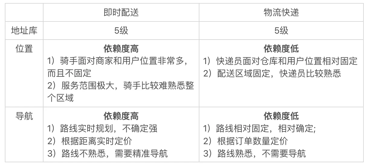 即时配送 VS 物流快递:即时配送对地图的依赖程度明显高于物流快递