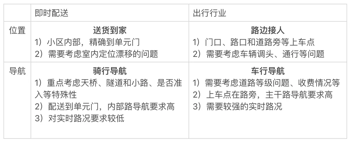 即时配送 VS 出行行业:地图厂商在车载导航的优势和积累,在即时配送场景较难发挥