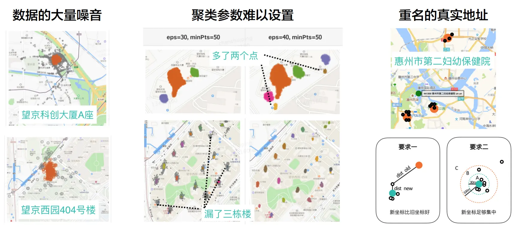 - 如何提升其作为POI挖掘和发现手段的准确率?这里面有很多优化点,比如去重(交付点-位置信息的一一映射),POI信息补全和更新。
