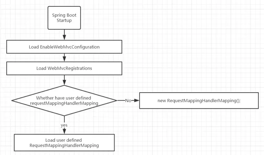 Spring Boot加载过程如下,所以我们可以通过自定义WebMvcRegistrationsAdapter来改写RequestMappingHandlerMapping。