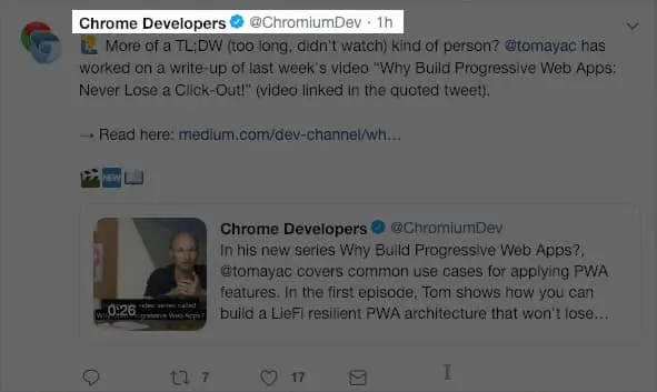 在 Twitter 上面, 最新的推文显示相对时间