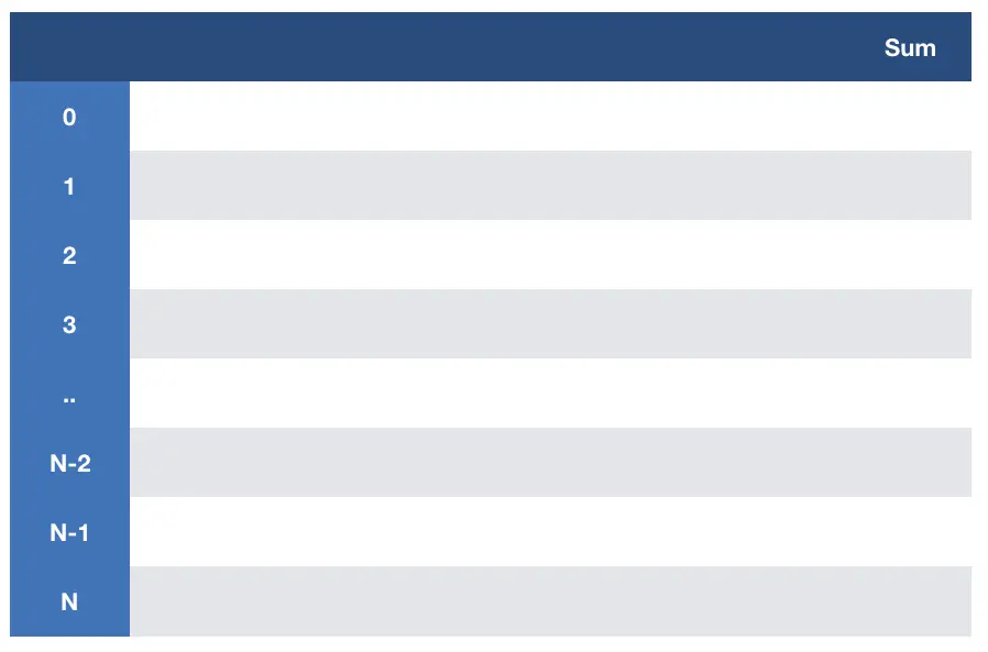 而F(i+1,sum1)+arr[i]又作为新的sum值Sum2存在于DP表内。