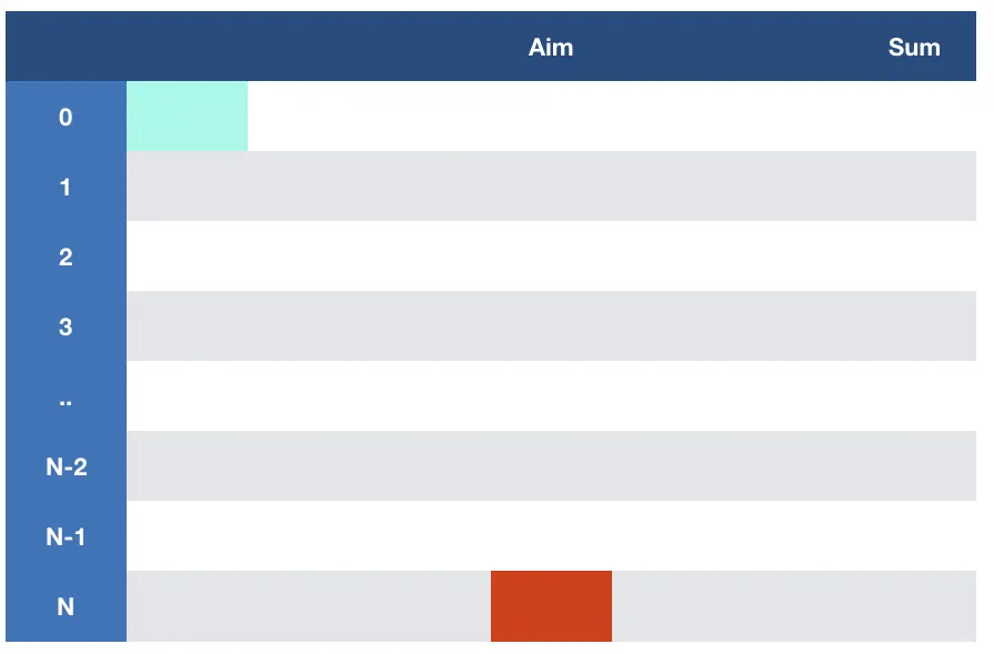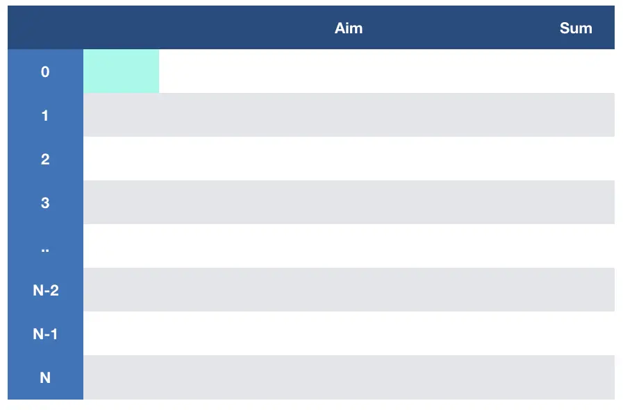 只有在F(N,Aim)时,aim==sum才会返回true