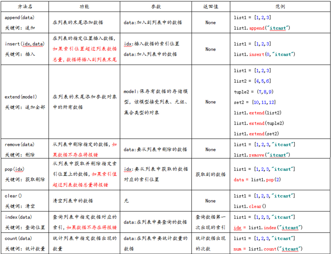 列表具有索引的概念,可以通过索引操作列表中的数据。列表中的数据可以进行添加、删除、修改、查询等操作。
