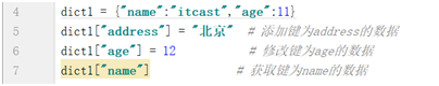 字典不具有索引的概念,字典使用键key代替索引,可以通过键操作字典中存储的数据value。字典可以根据键key进行数据的添加、删除、修改、查询操作。