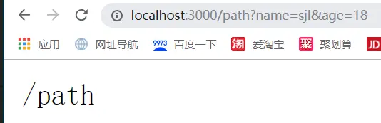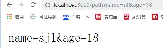 访问http://localhost:3000/path?name=sjl&age=18为例,效果图: