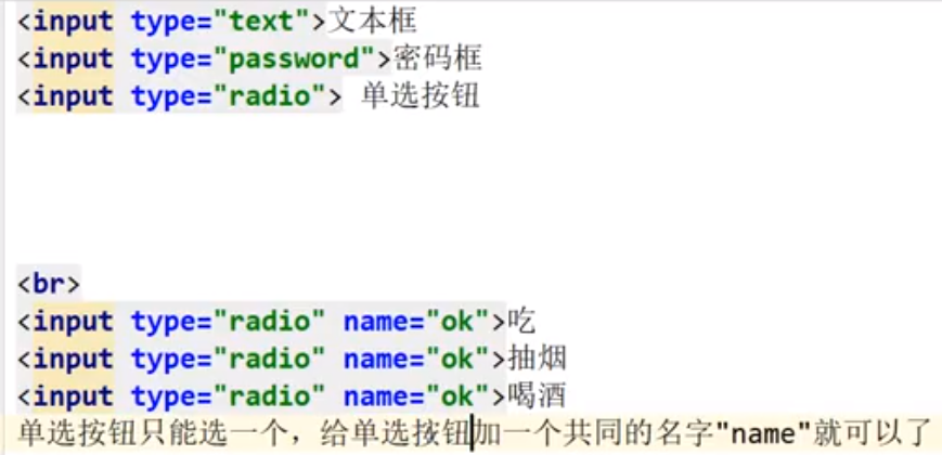 <!--单选框,写name属性的话就能分出来单选和双选了-->