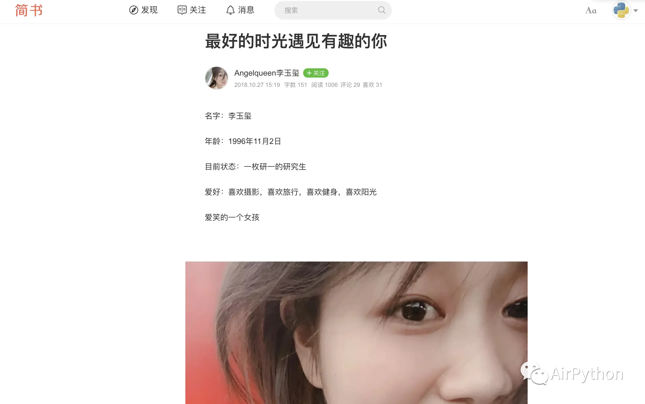 我已将完整代码上传到后台,有需要的同学关注公众号【AirPython】,后台回复「简书」即可获取。