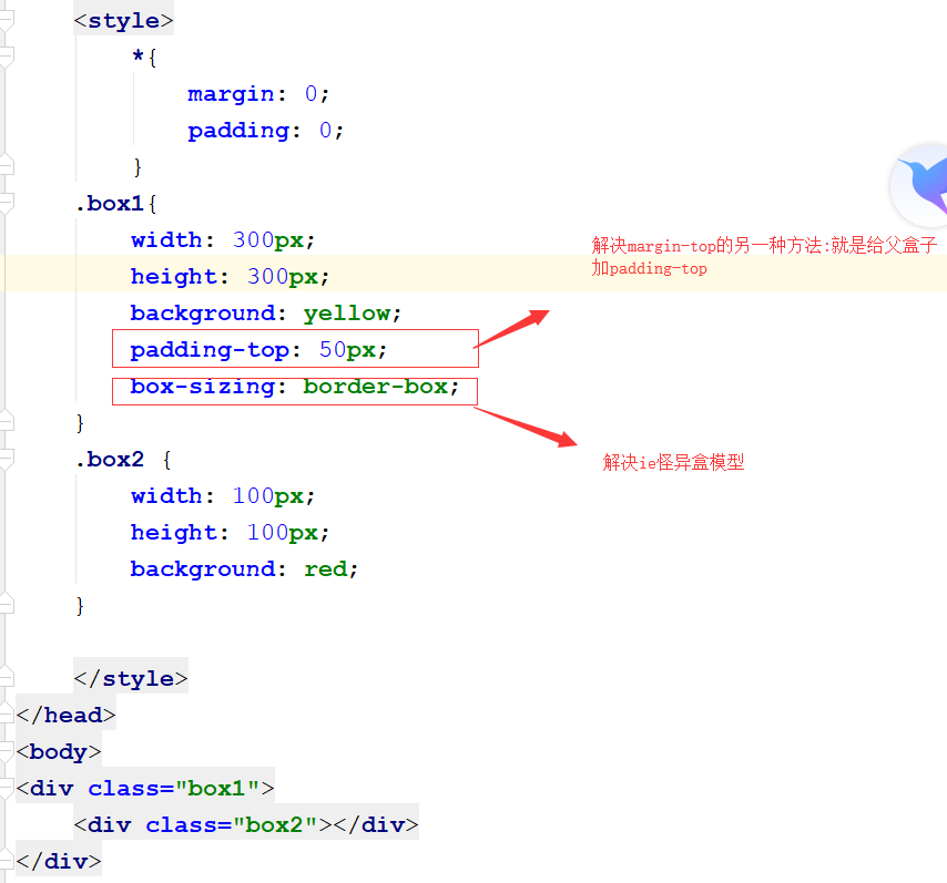 - 不给子盒子设置margin-top,只用给父盒子设置padding-top,咱们可以同样达到效果