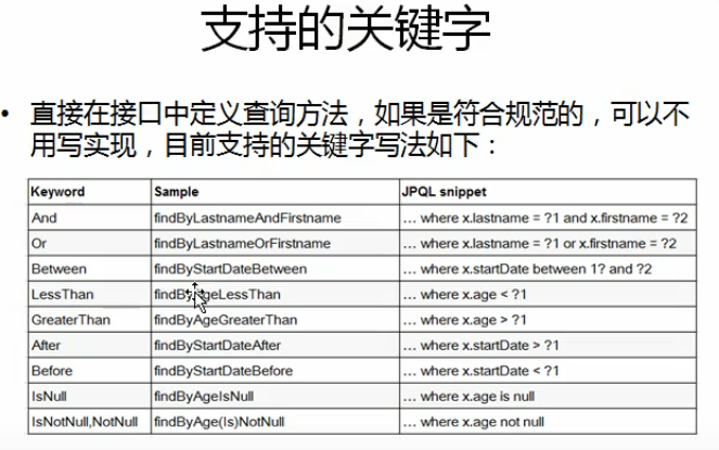 - 一些根据关键字无法实现的查询可以通过@Query注解来实现